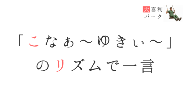 「こなぁ~ゆきぃ~」のリズムで一言
